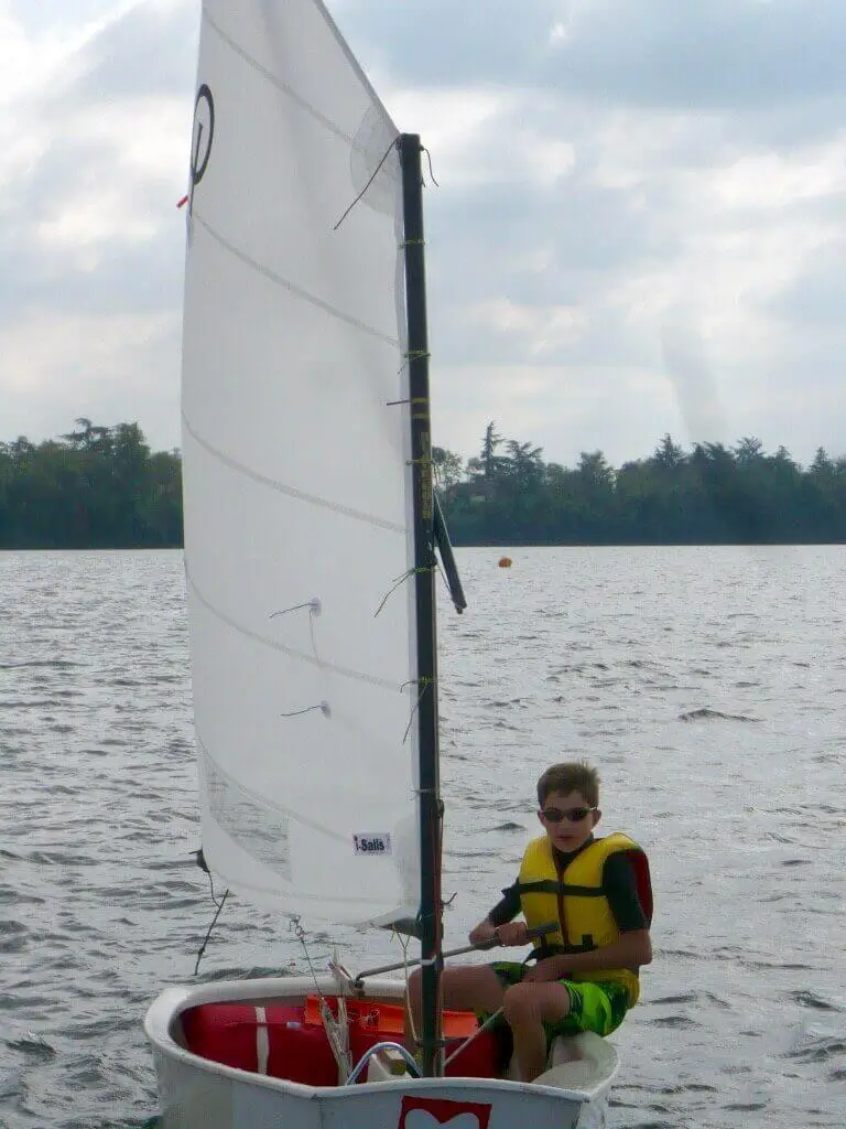 The Optimist (“Opti”)is safe and stable for beginners, and allows building core sailing and racing skills.